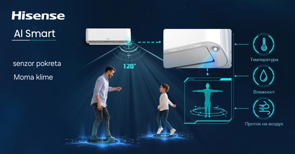 Automatski se podešavaju temperatura, vlažnost vazduha i protok vazduha prema uslovima u prostoriji kako bi vam bilo udobno u svakom trenutku. Optimalna raspodela vazduha: Smer vazduha će pratiti ili izbegavati osobe u prostoriji, tako da ćete se osećati izuzetno prijatno u svakom trenutnku.
